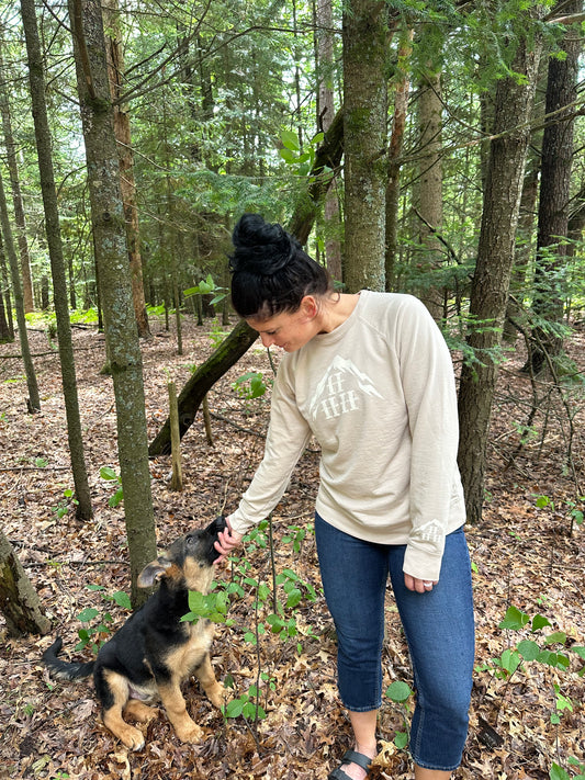 Hike Hang Hunt- Women's Terry Crewneck Lightweight Sweatshirt - Sand/Ivory